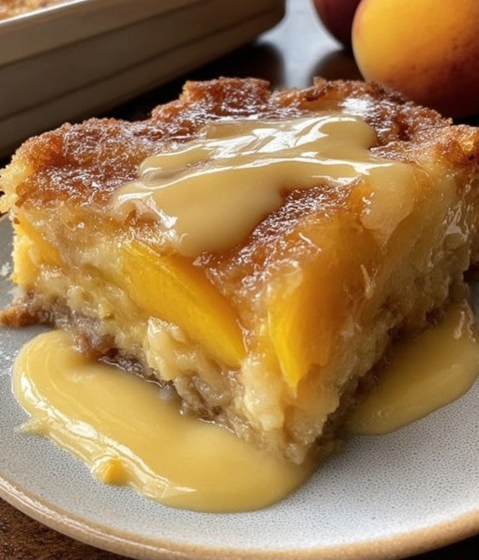 A warm, comforting dessert filled with juicy peaches and topped with a rich, caramel-like sauce. Perfect with ice cream or whipped cream.