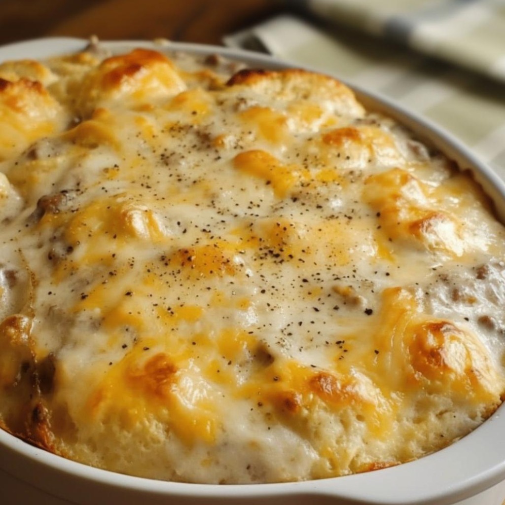 This recipe combines two timeless favorites into one hearty dish that’s perfect for feeding a crowd or indulging yourself on a lazy morning. Flaky, buttery biscuits topped with velvety sausage gravy—it’s simple yet unforgettable.