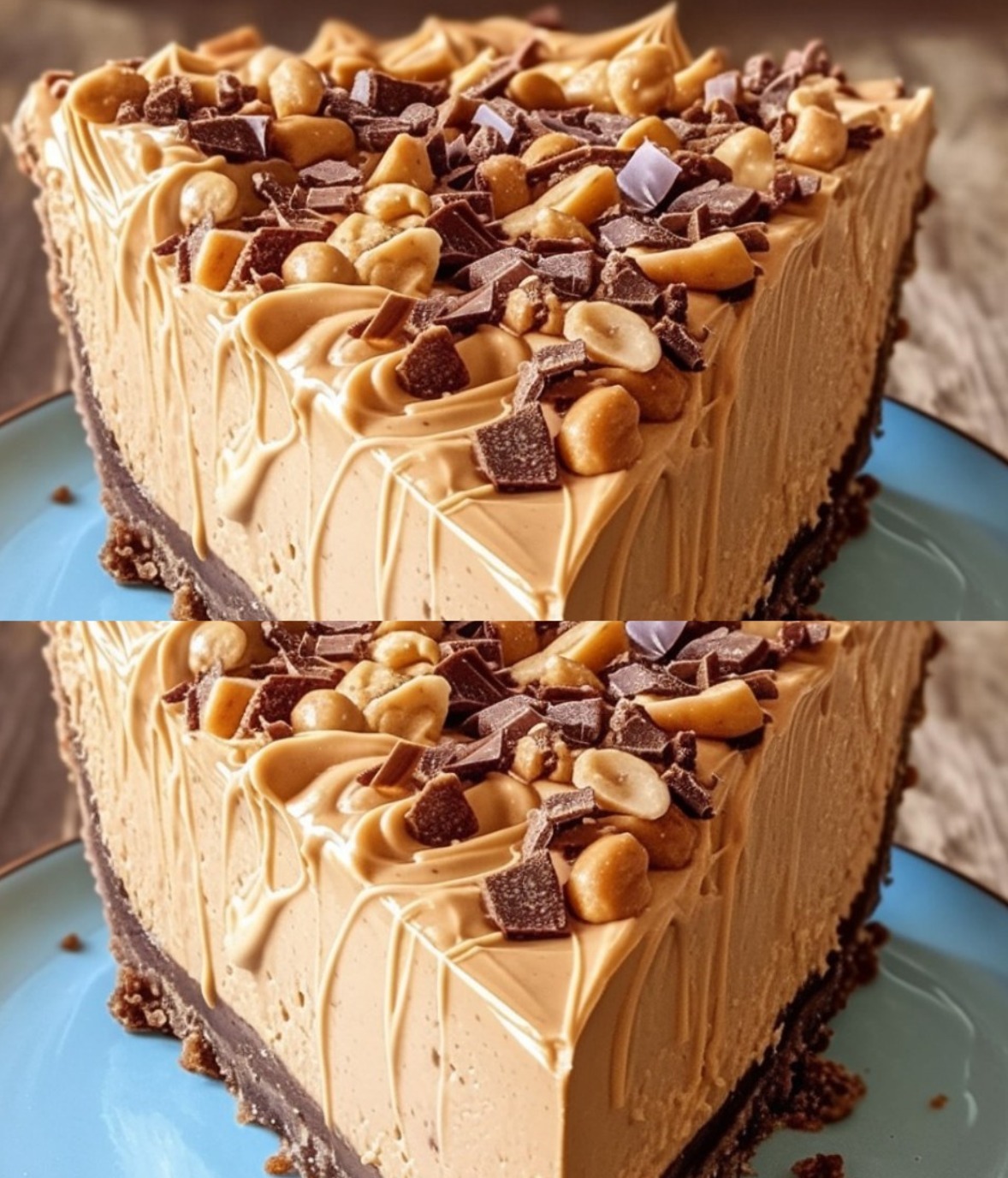 This dreamy Peanut Butter Cheesecake recipe features a decadently creamy peanut butter filling 🥜, crunchy OREO crust, and luscious chocolate ganache topping 🍫.