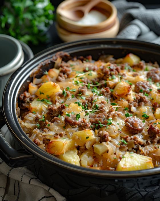 Nestled within my repertoire of recipes is a dish that harks back to the hearty, robust meals favored in the Midwest. This Slow Cooker Ground Sausage, Sauerkraut & Potato Casserole is more than just a meal; it’s a tale of heritage, a nod to the resourcefulness of past generations, and a warm, comforting embrace on chilly evenings.