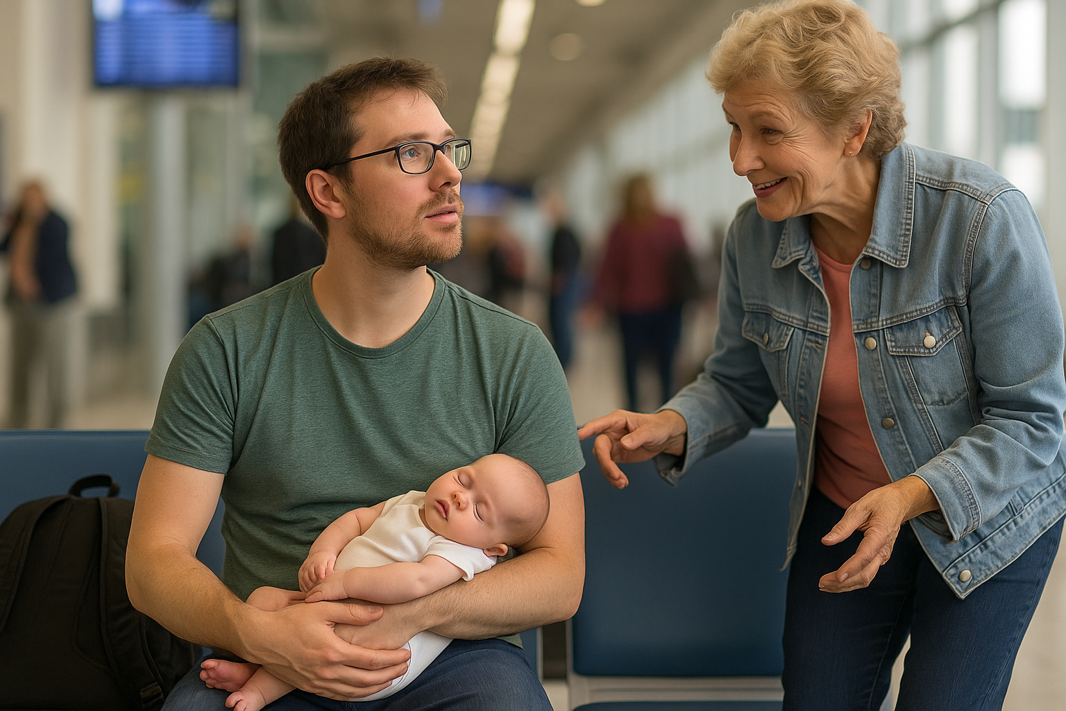 As the airport buzzed with the usual sounds—rolling suitcases, boarding calls, and faint conversations—David sat quietly on a row of plastic chairs, gently rocking his newborn baby in his arms. It had only been a week since he’d become a father, and the weight of responsibility pressed on him more than the bags beneath his seat.