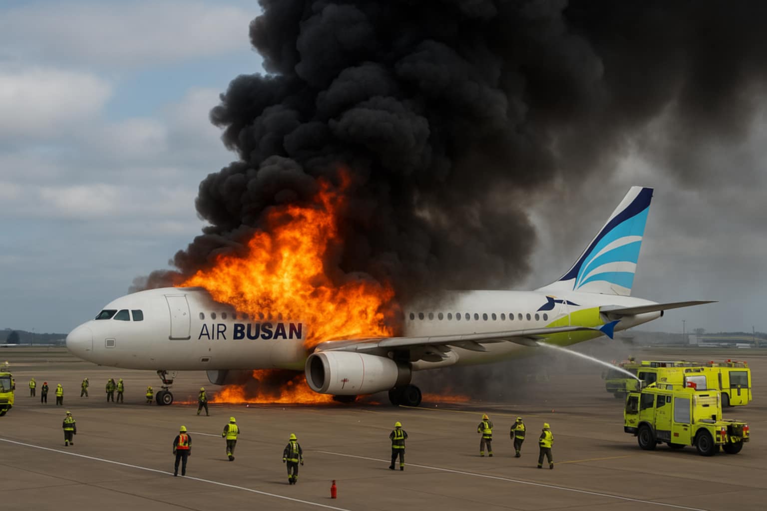On January 28, 2025, a terrifying incident unfolded at Gimhae International Airport in Busan, South Korea, when Air Busan Flight 391, an Airbus A321 aircraft, suddenly caught fire just moments before takeoff. The blaze erupted in the rear section of the plane while it was preparing for departure, creating scenes of panic and urgency as smoke quickly filled the cabin and flames spread outside.