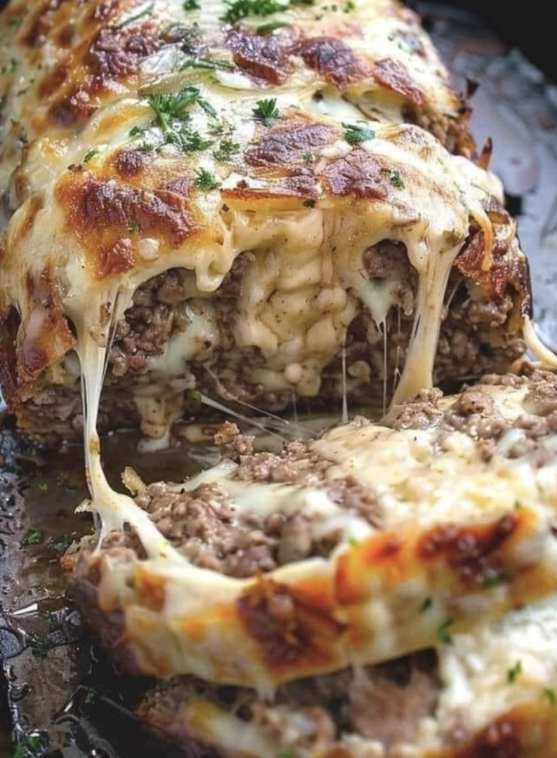 This Philly Cheesesteak Meatloaf combines the savory flavors of a cheesesteak sandwich with the comfort of a classic meatloaf. Juicy ground beef is mixed with sautéed peppers, onions, and mushrooms, then layered with melted provolone cheese for a cheesy, flavorful dinner the whole family will love. Serve it with mashed potatoes, roasted veggies, or even in a sandwich bun for the ultimate meal.