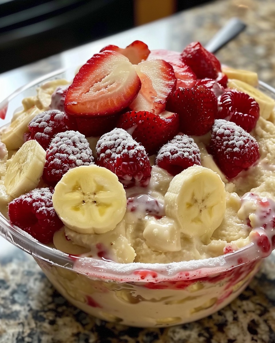 A fruity twist on the classic Southern dessert! Creamy pudding, fresh strawberries, and bananas layered with vanilla wafers—simply irresistible.