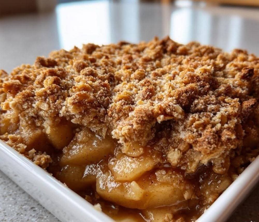 5. Bake for 40-45 minutes or until the topping is golden brown and the apples are bubbly and tender.