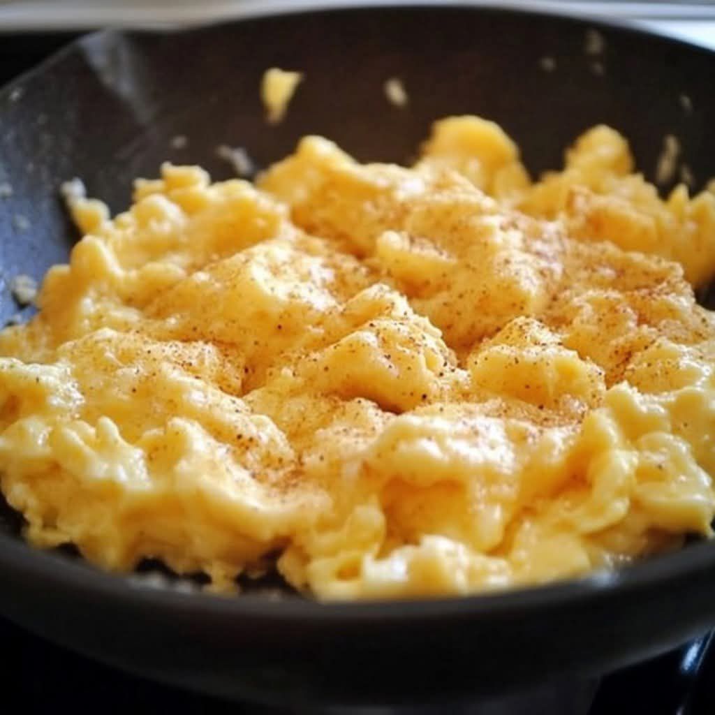 Gently stir – Using a spatula, push the eggs from the edges toward the center in slow, gentle folds. Continue this motion as the eggs cook, creating soft curds.