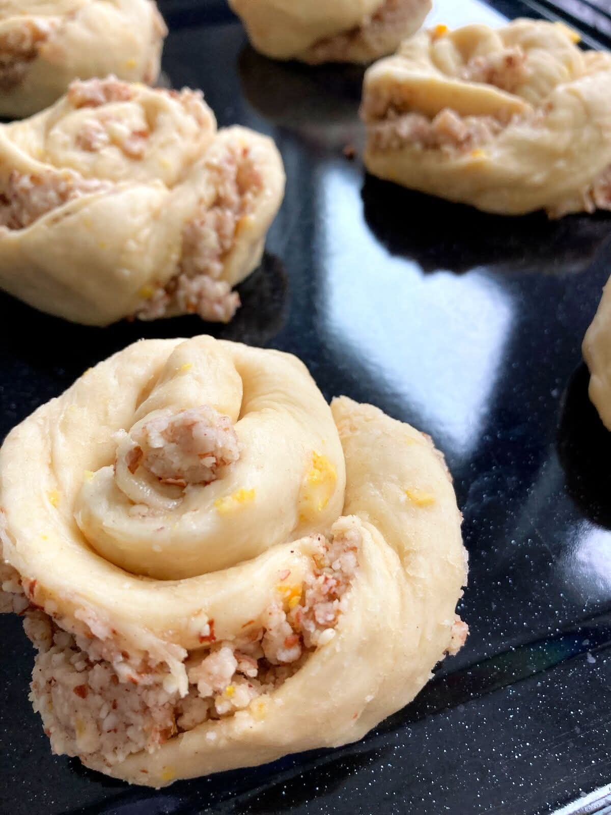 A timeless breakfast favorite with a delicate almond filling and a light orange glaze.