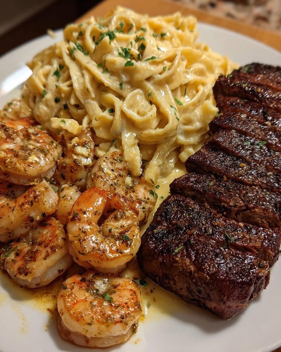 If you’re craving a rich, indulgent dinner, this Steak and Shrimp Alfredo is the ultimate surf-and-turf dish. Tender, juicy steak paired with buttery shrimp, all smothered in a creamy Alfredo sauce, makes for a restaurant-quality meal you can create right at home. Perfect for special occasions, date nights, or when you simply want to treat yourself, this recipe combines bold flavors and luxurious textures in every bite.