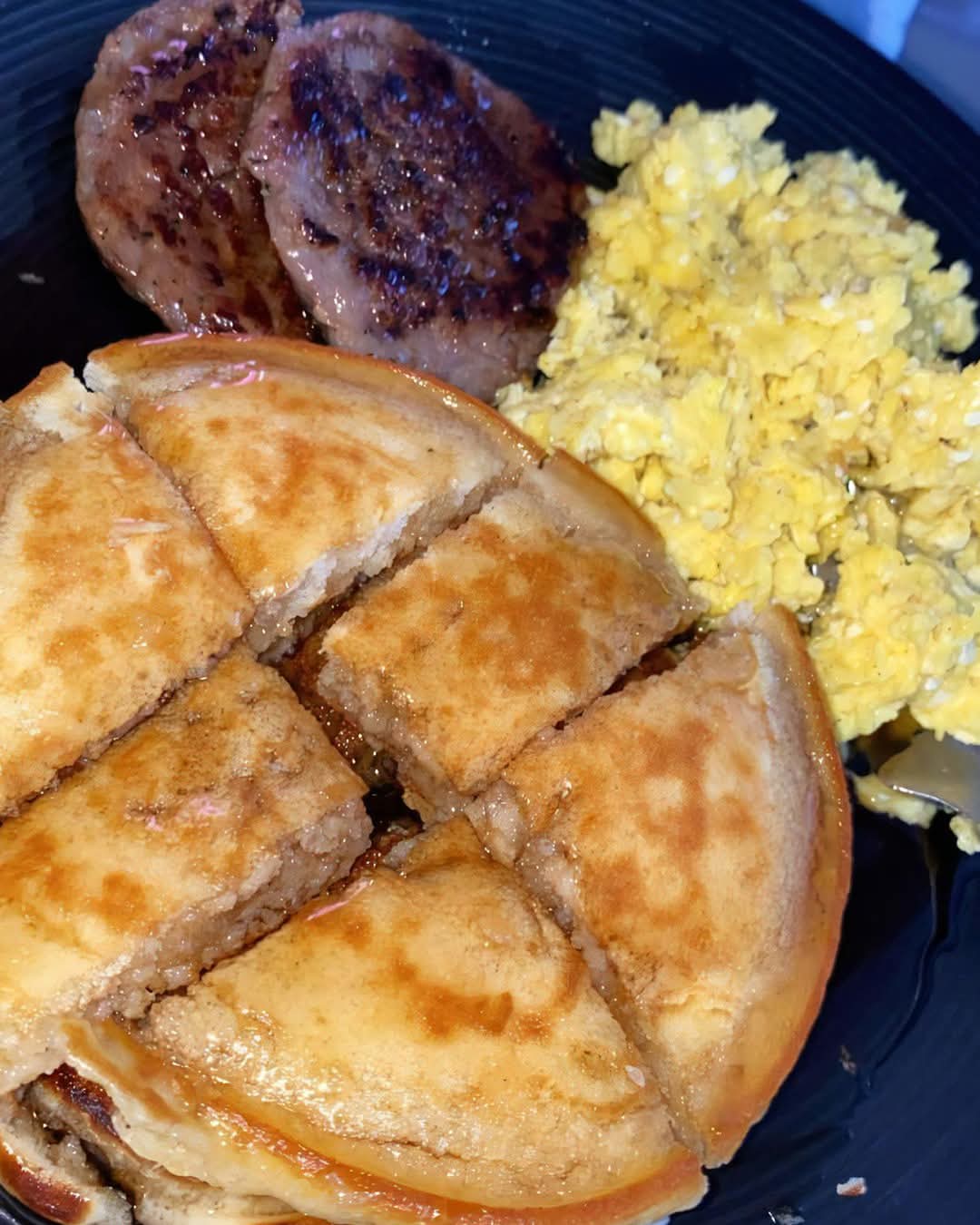 Classic Pancake Breakfast with Scrambled Eggs & Sausage