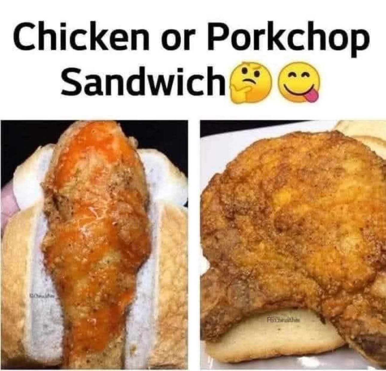 Fried Chicken Sandwich (drumstick style with hot sauce) OR Fried Pork Chop Sandwich