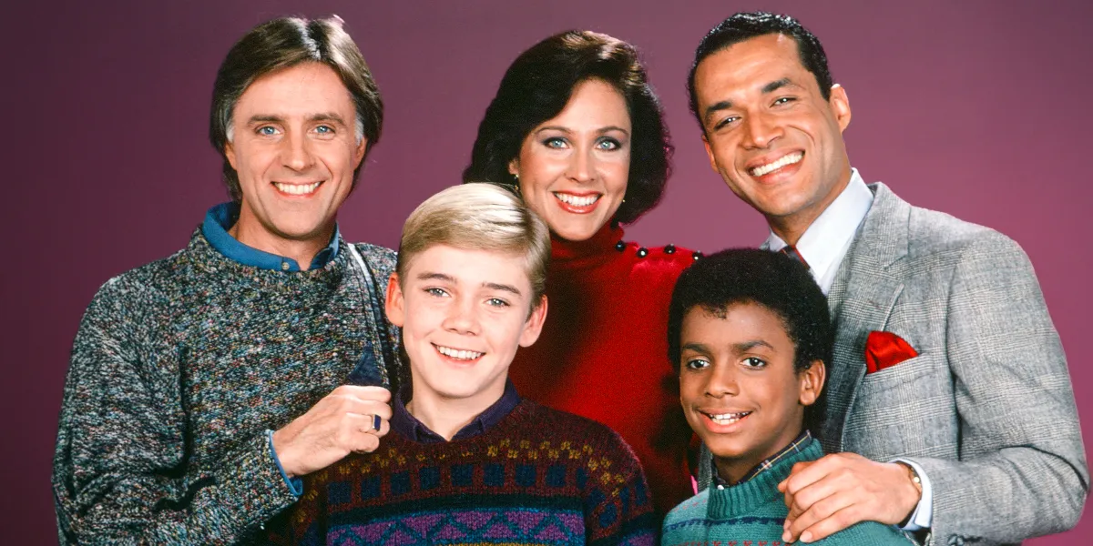 Ricky Schroder as Ricky Stratton, Alfonso Ribeiro as Alfonso Spears, Joel Higgins as Edward Stratton III, Erin Gray as Kate Summers Stratton, and Franklyn Seales as Dexter Stuffins for “Silver Spoons” Season 3 in 1984. | Source: Getty Images
