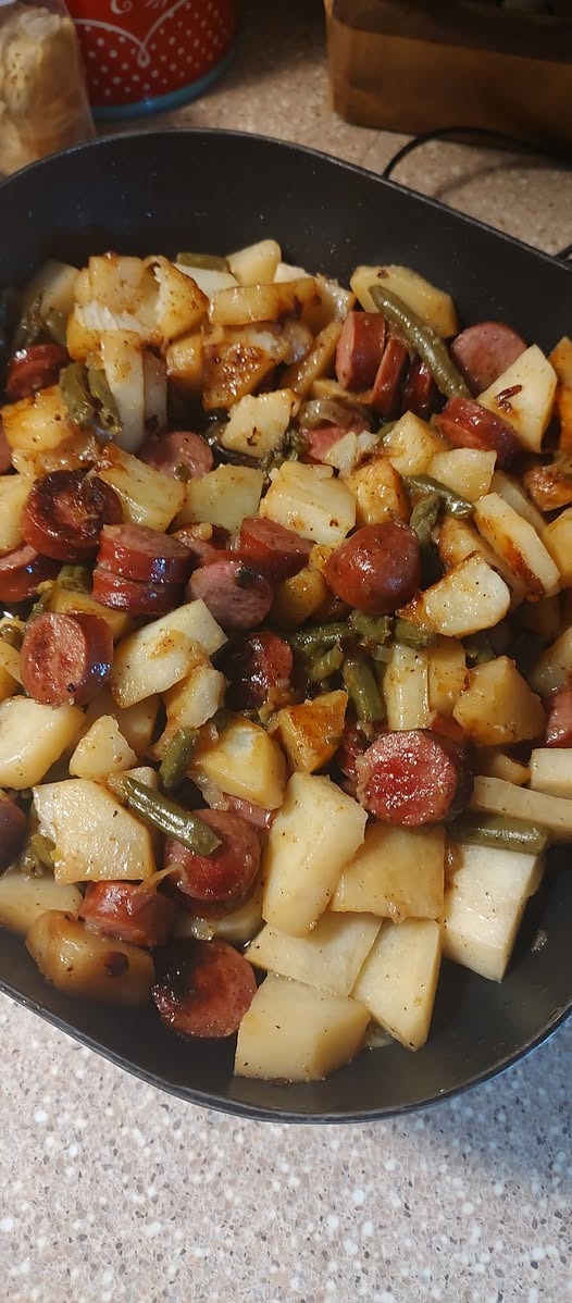 This dish is a true family favorite—juicy sausage links roasted together with crispy, golden potatoes. The oven does all the work, creating a one-pan meal that’s full of flavor and easy to clean up. Seasoned with herbs, garlic, and a drizzle of olive oil, this recipe is comforting, filling, and perfect for busy weeknights.