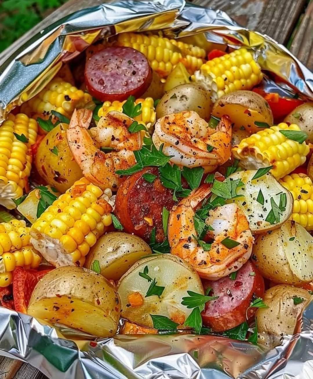 A bold, smoky, buttery, and satisfying one-pack meal—loaded with juicy shrimp, sweet corn, tender potatoes, and flavorful smoked sausage. Perfect for grilling, baking, or campfire cooking. Minimal cleanup, maximum flavor!This foil pack dinner is inspired by classic Southern shrimp boils, but with the convenience of individual portions and simple cleanup. Each foil pack steams gently, locking in flavor from the seasoned butter, herbs, and smoked sausage. It’s ideal for cookouts, camping trips, or even busy weeknights.