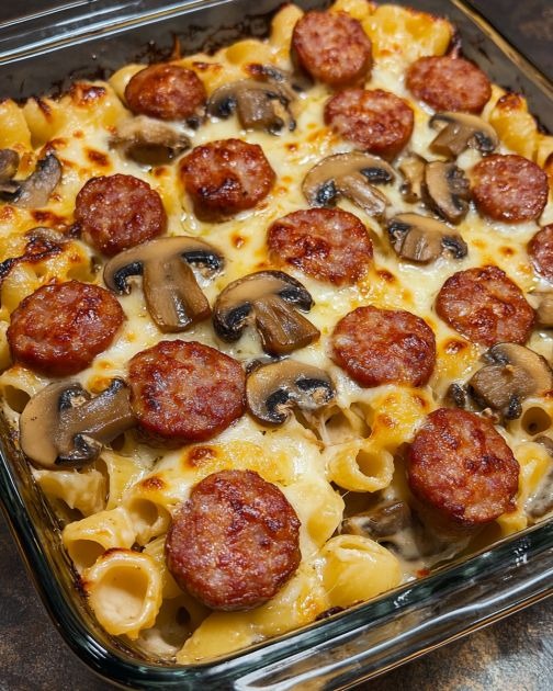 Oven Baked Sausage and Mushroom Pasta Gratin