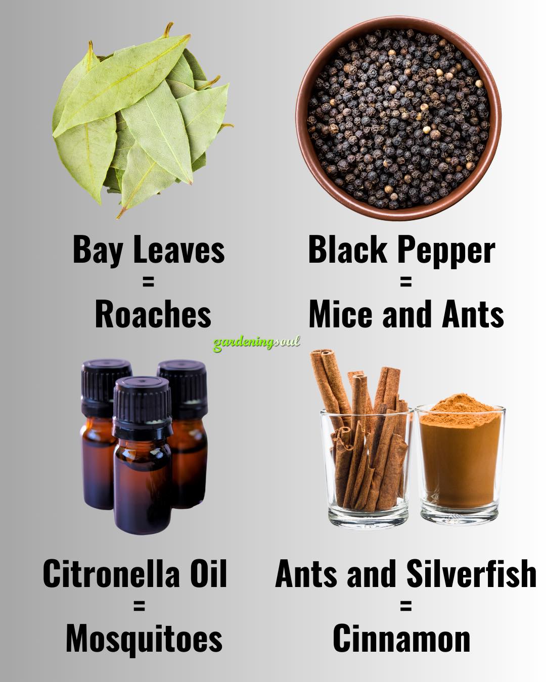 From bay leaves to deter cockroaches to citronella oil for mosquitoes and black pepper to repel ants and mice, nature provides a variety of scents, compounds, and essential oils that pests hate.