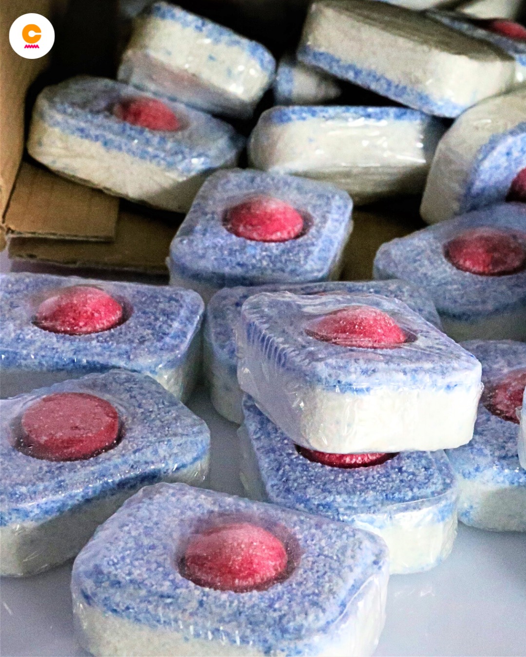 Dishwasher tablets contain chemicals that soften hard water, bleaches that help tackle tough stains, enzymes that quickly dissolve starch and protein-based foods, and finally, surfactants that give your glasses that sparkling look after a wash.