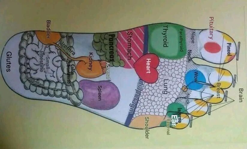 The kidney, liver, spine, and brain are all believed to have corresponding zones on the feet.