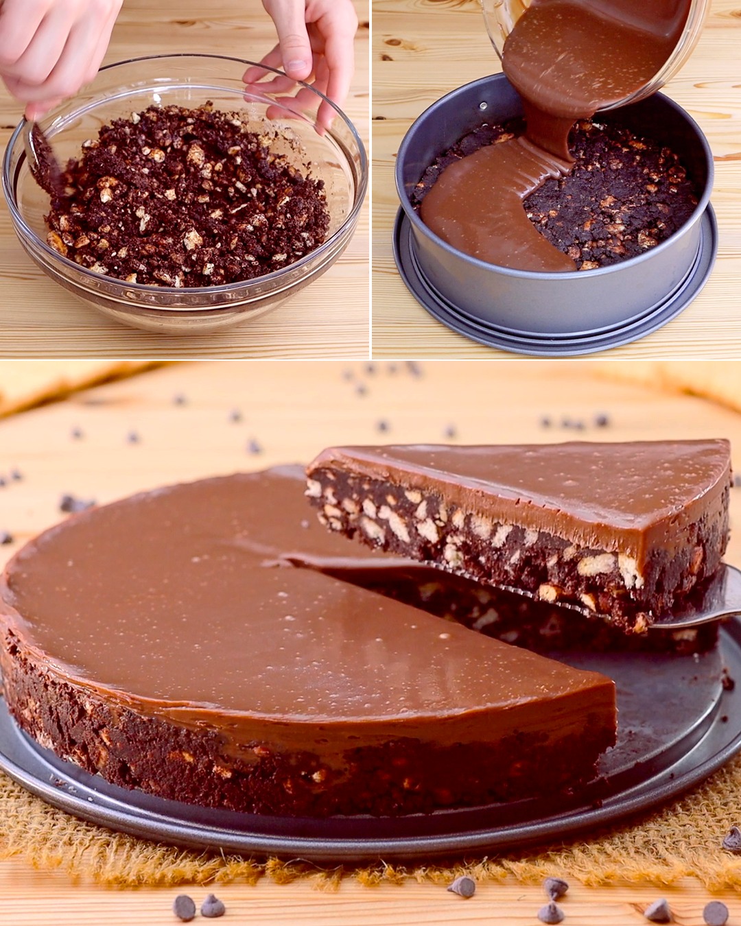 No-bake chocolate tart is a rich, indulgent dessert that requires no oven time. While it typically consists of a graham cracker crust, a creamy chocolate filling, and a layer of whipped cream, this tart is a bit different. The filling is made with crushed cookies, cocoa powder, melted butter, and sugar. Once set, the filling is topped with a chocolate ganache.