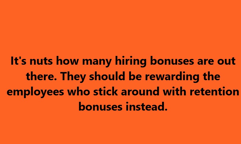 It’s nuts how many hiring bonuses are out there. They should be rewarding the employees who stick around with retention bonuses instead.