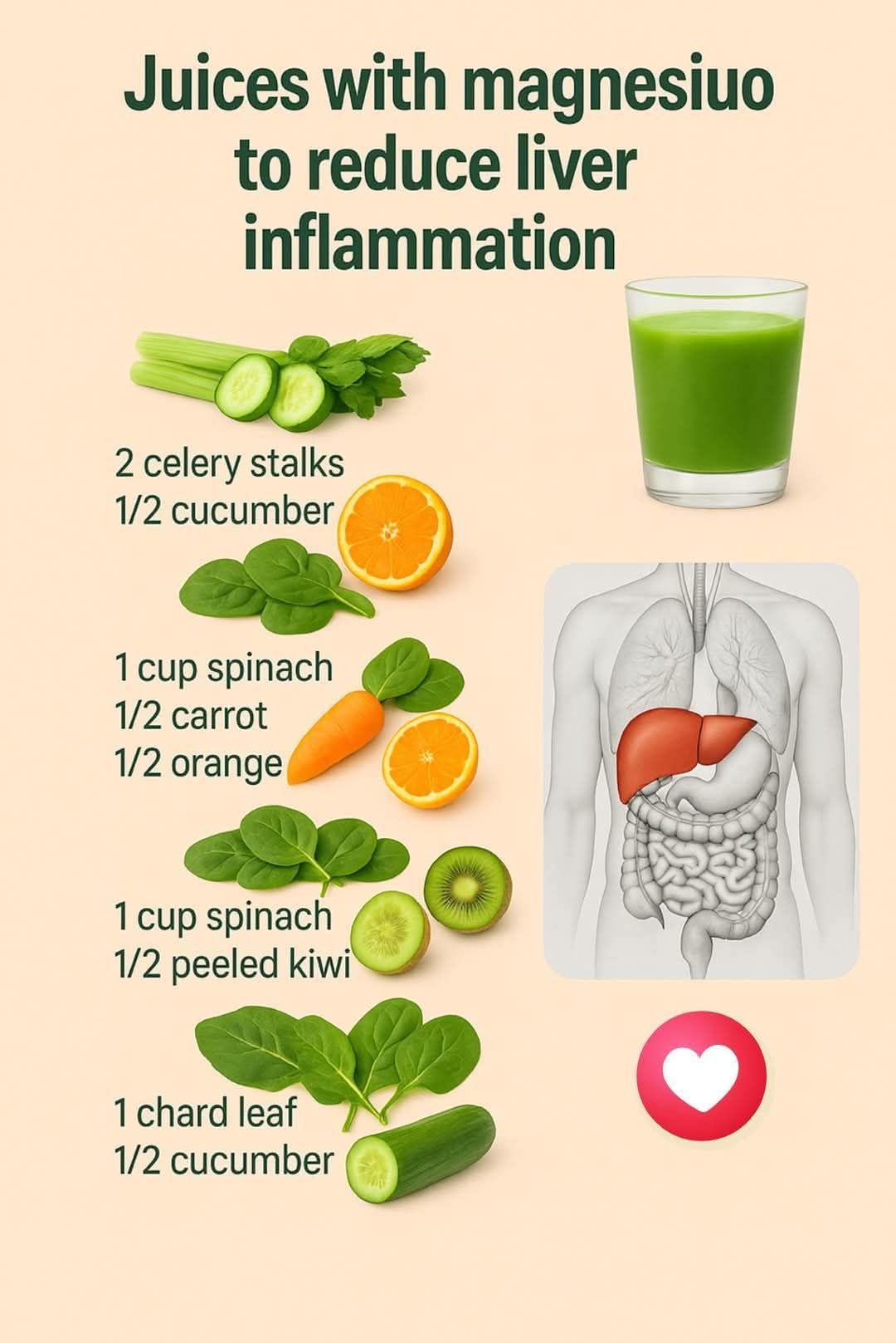 Magnesium is an essential mineral that plays a role in over 300 enzymatic reactions in the body, including those that support liver function and help reduce inflammation. Combined with other liver-supportive ingredients, these juice recipes provide a delicious way to increase your magnesium intake and potentially support liver health naturally.