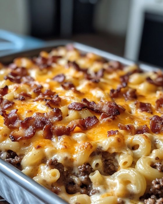 Some of the best family memories are made around the dinner table, and nothing brings everyone together like a warm and hearty meal. This baked bacon cheeseburger mac and cheese is a delicious twist on a comfort food classic. Combining all the savory goodness of a cheeseburger with the creamy delight of mac and cheese, this dish is perfect for a cozy weeknight dinner or a gathering with friends. It’s quick, easy, and sure to be a hit with both kids and adults alike.