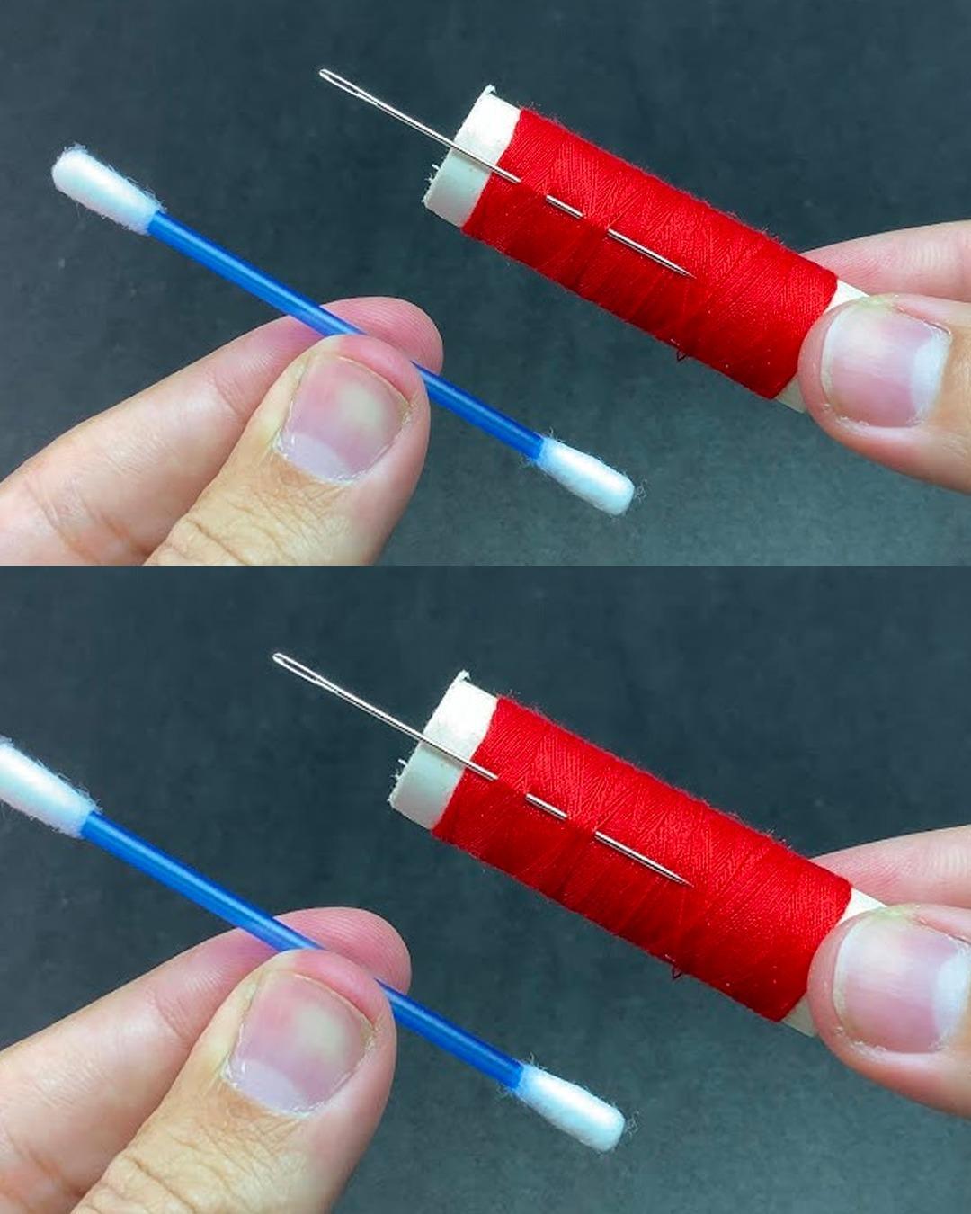 Threading a needle is one of the most common sewing tasks, but it can be frustrating, especially when the thread seems to refuse to pass through the eye. A seamstress with 60 years of experience has shared an ingenious trick that makes this process quick and easy, even for those with less than perfect eyesight or fine motor skills. With the help of common tools, like a cotton swab, threading the needle will no longer be a problem.