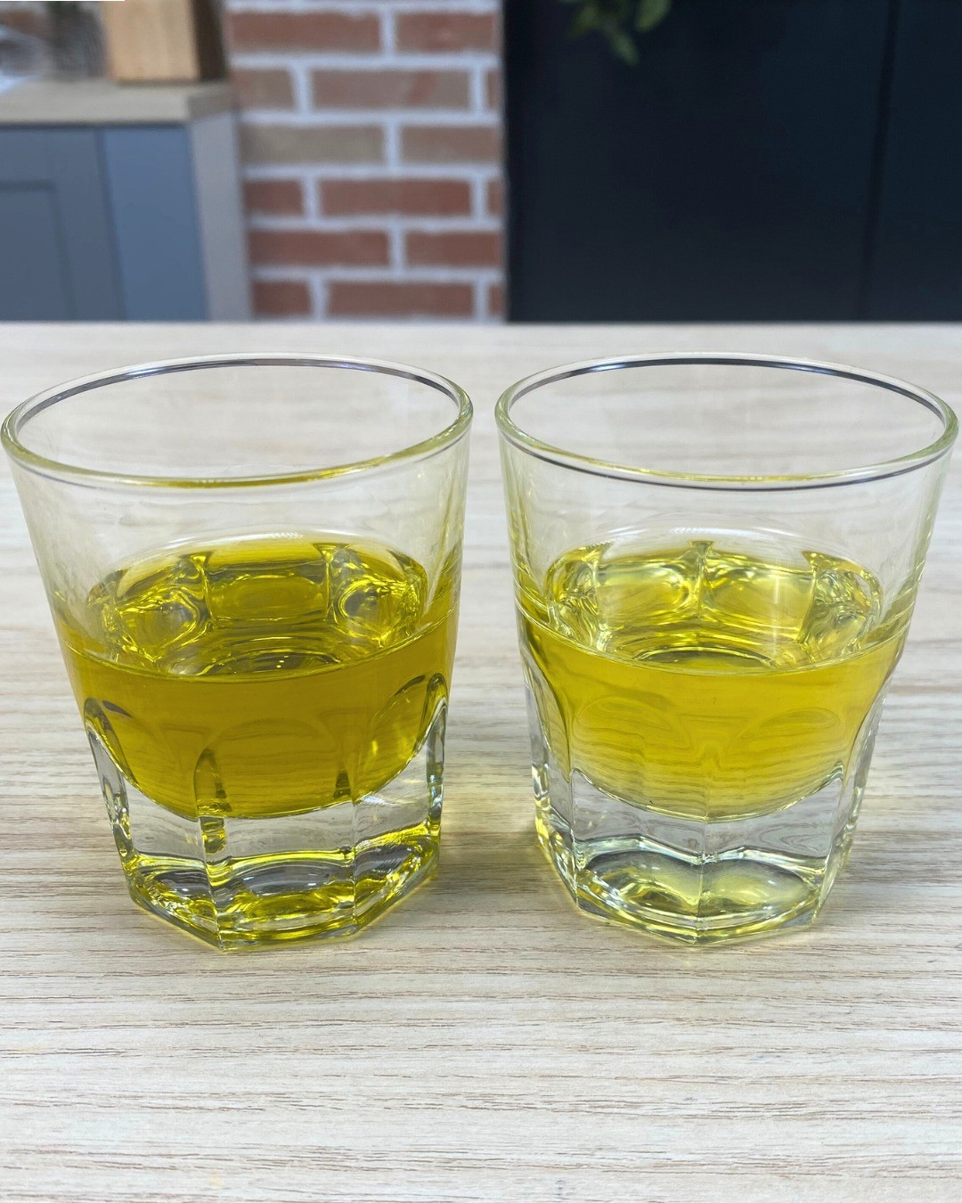 Amber Olive Oil: A darker, amber hue in olive oil can indicate oxidation or aging. If the oil is darker than usual, it might suggest that the oil has been improperly stored or is past its prime. Amber-colored oil is often a sign of diminished quality and flavor.