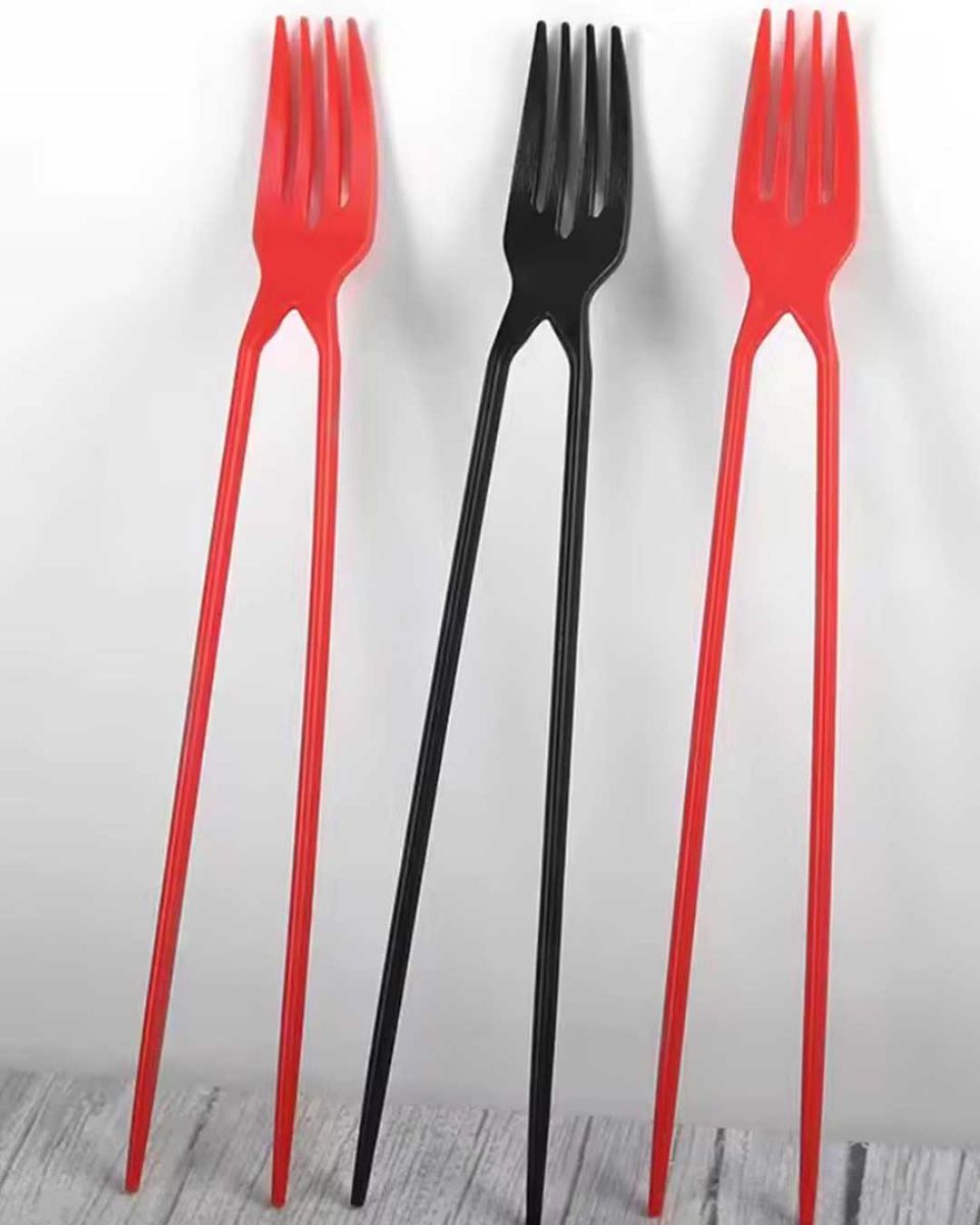 Training chopsticks have their origins in East Asia, where they were developed to help beginners, particularly children, learn how to use chopsticks effectively. These modified chopsticks often come with features like loops or connectors that guide the fingers into the correct position, making it easier to grasp and manipulate food. The chopstick-fork combo can be seen as an evolution of this concept, blending the ease of a fork with the skill-building aspect of chopsticks.