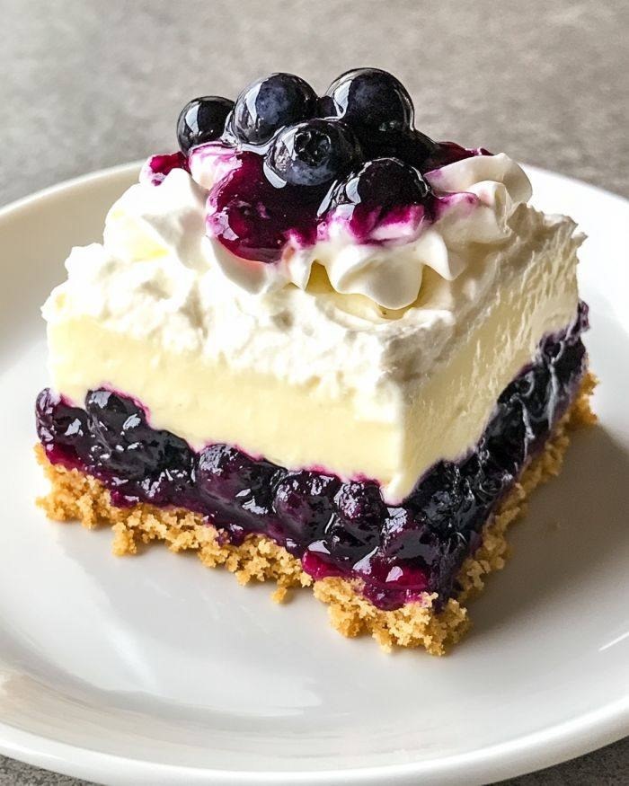 A luscious, creamy lemon filling meets a sweet-tart blueberry layer, all nestled in a buttery graham cracker crust. Perfect for summer gatherings or anytime you crave a bright, fruity treat!