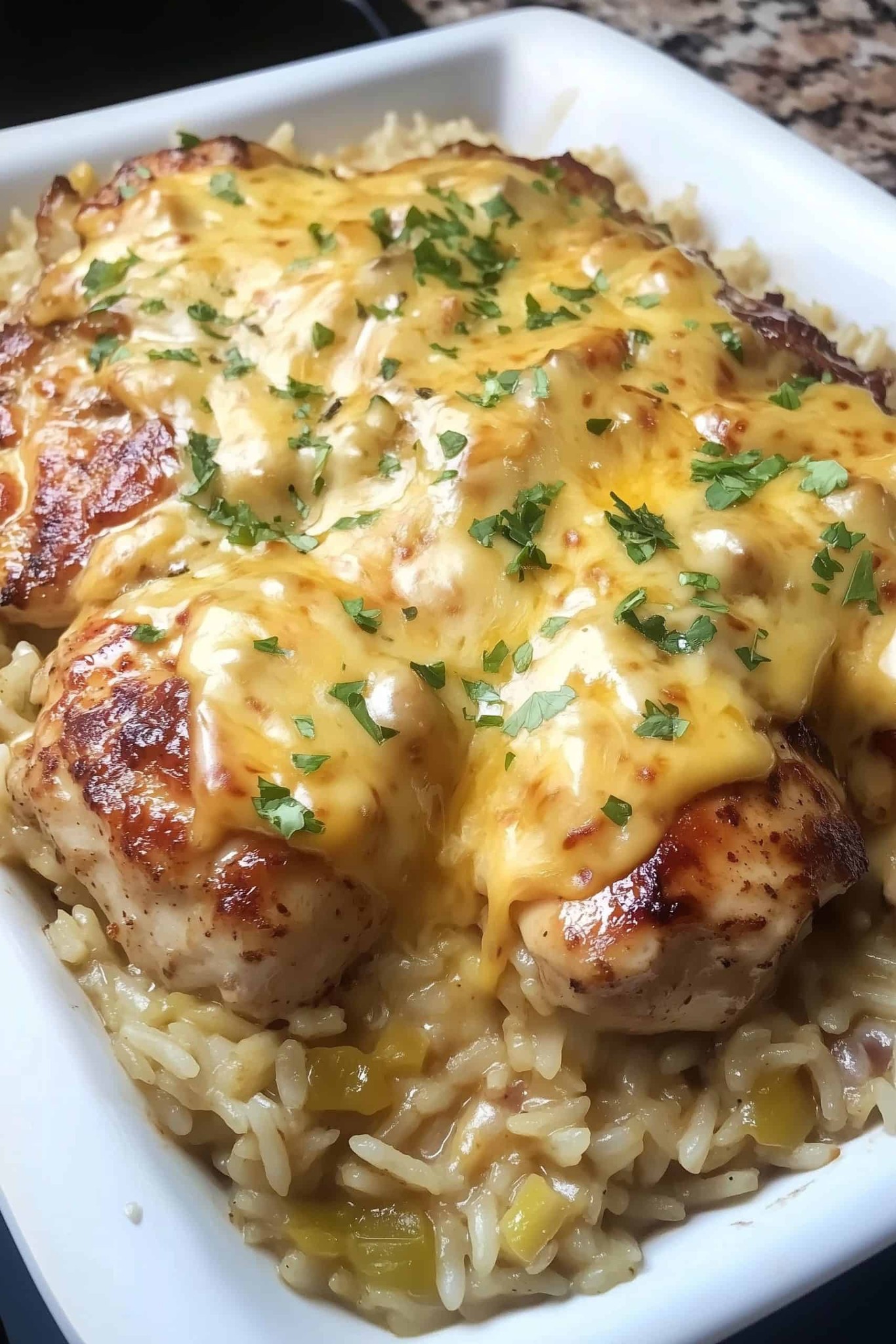 This recipe brings together deeply seasoned chicken, fluffy tomato-infused rice, and a silky queso blanco sauce with pepper jack for extra punch. It’s hearty, flavorful, and irresistibly cheesy.