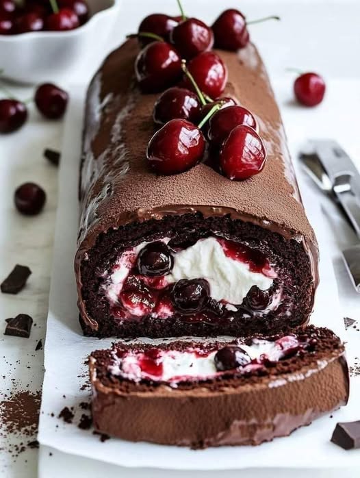 Imagine moist chocolate cake layered (or studded) with juicy cherries, finished with a glossy ganache or whipped topping—every bite feels indulgent, yet balanced.