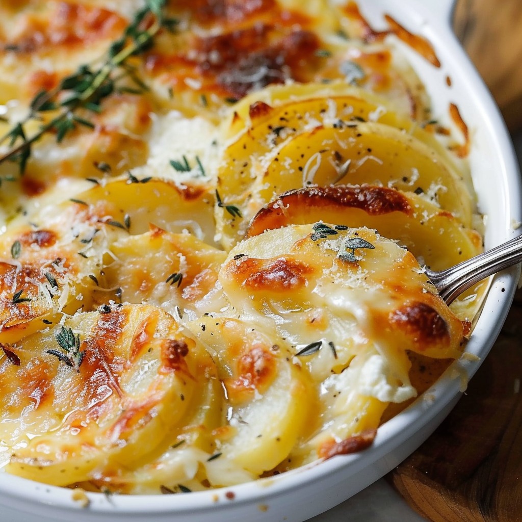🥔 Easy Scalloped Potatoes with Garlic, Thyme, and Parmesan Cheese 🧀🌿