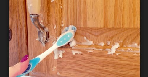 Dish soap is not exactly known to be used as a cleaning agent on cabinets, but it’s time you give it a try. Add a little bit of liquid dish soap to warm water, dip in a soft cloth and scrub your cabinets. Use another cloth (dampened with just water) to rinse away the dish soap, and finish by drying everything with a dry cloth.