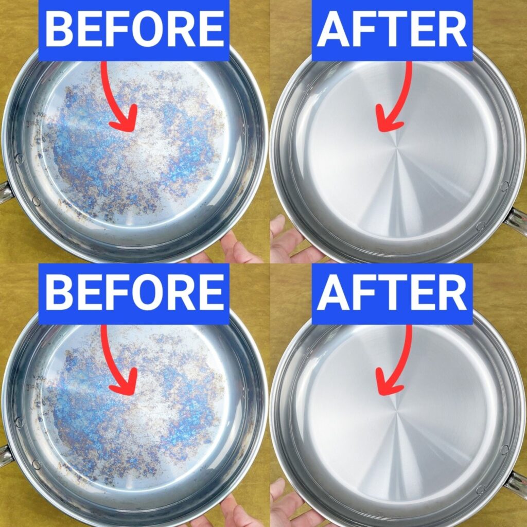 Rainbow stains on stainless steel, also known as heat stains, often appear due to overheating or exposure to certain chemicals. These stains can dull the appearance of your stainless steel appliances or cookware, but luckily, there’s a quick and easy fix that only takes 10 seconds!