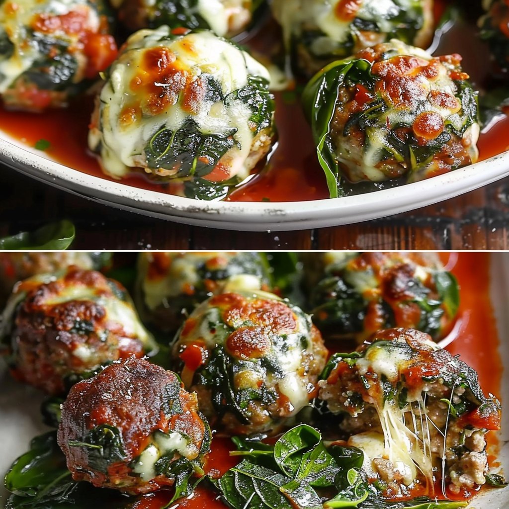 Spinach Garlic Meatballs Stuffed With Mozzarella
