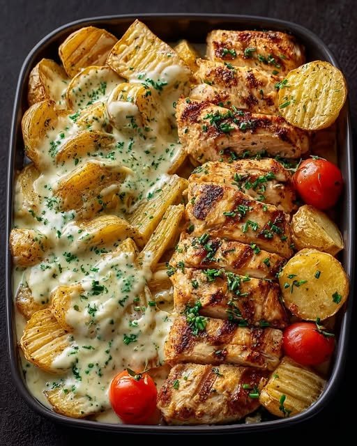 The Creamy Artichoke & Herb Chicken Pasta Bake is a warm, indulgent dish that brings together tender chicken, tangy artichokes, fragrant herbs, and a rich, cheesy cream sauce. The addition of roasted baby potatoes makes this dish heartier and more rustic β like a complete meal in one pan. Perfect for family dinners, gatherings, or cozy nights in, this recipe combines the best of Mediterranean flavor and classic baked-pasta comfort.