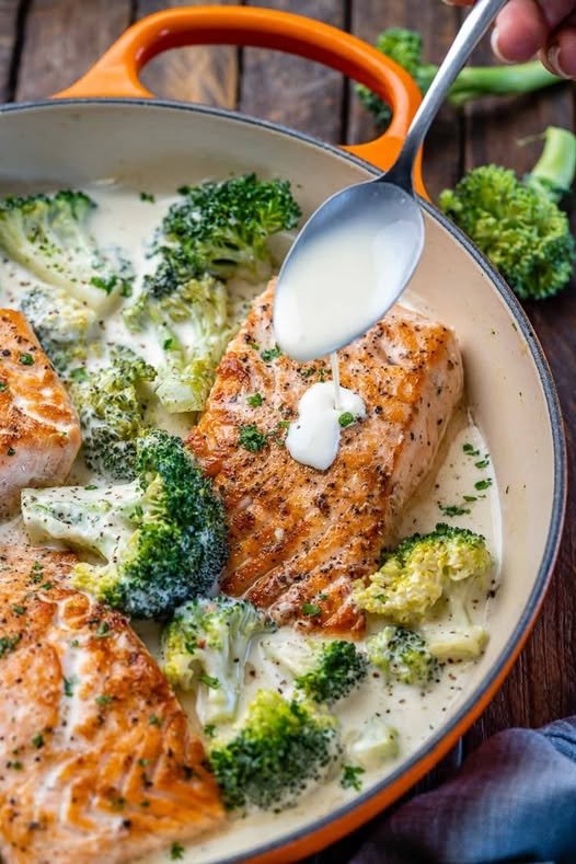 Heat olive oil in a non-stick skillet over medium-high heat. Place salmon fillets skin-side down (if using) and cook for 4–5 minutes until the skin is crispy and the edges turn golden. Flip and cook for another 2–3 minutes, until the salmon flakes easily with a fork. Remove from pan and set aside. - Make the Garlic Butter Broccoli: