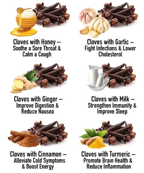 Cloves are far more than a holiday spice. These tiny, aromatic buds are packed with antioxidants, anti-inflammatory compounds, and essential oils that support nearly every system in the body. Here are 20 powerful ways to combine cloves with other natural ingredients to boost your health — and how to prepare each remedy correctly.