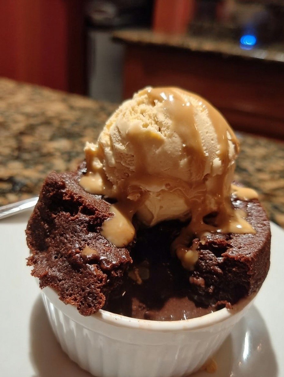 Pour the batter into your prepared dish or ramekins. Bake for 25–30 minutes (or about 20 minutes if using small ramekins). The cake should be set but still moist in the center.