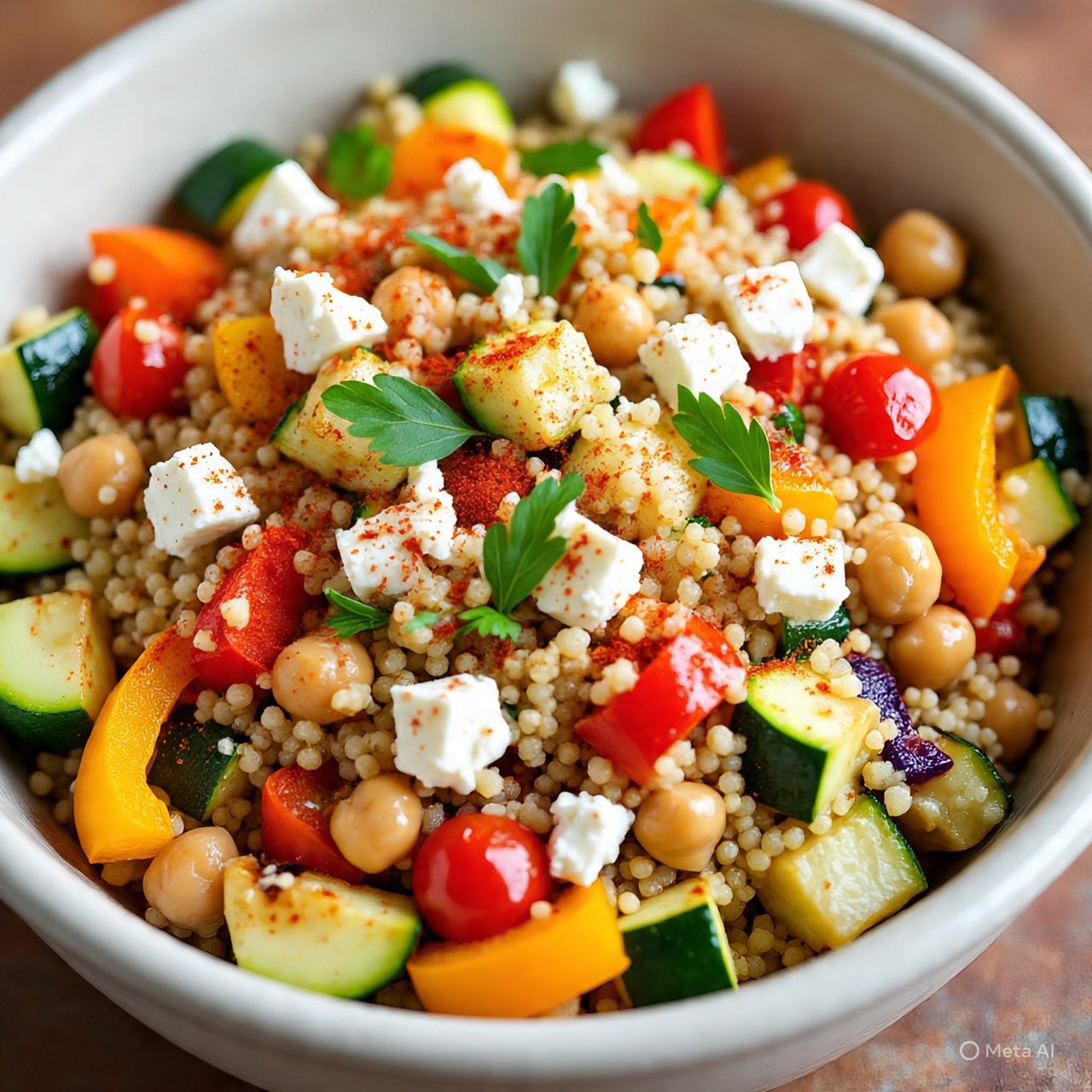 It’s often seen on summer tables, combining the best of both worlds — hearty grains and vibrant roasted vegetables — all tied together with the golden touch of olive oil and lemon. The briny olives and creamy feta provide contrast, while the herbs make every bite burst with life.