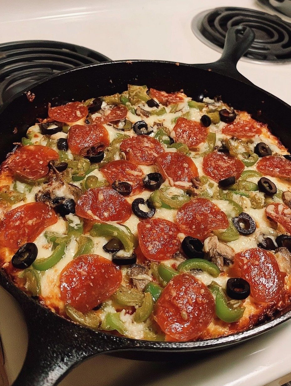 Transfer the skillet to a preheated oven at 425°F (220°C). Bake for 12–15 minutes until the crust is golden and the cheese melts beautifully.
