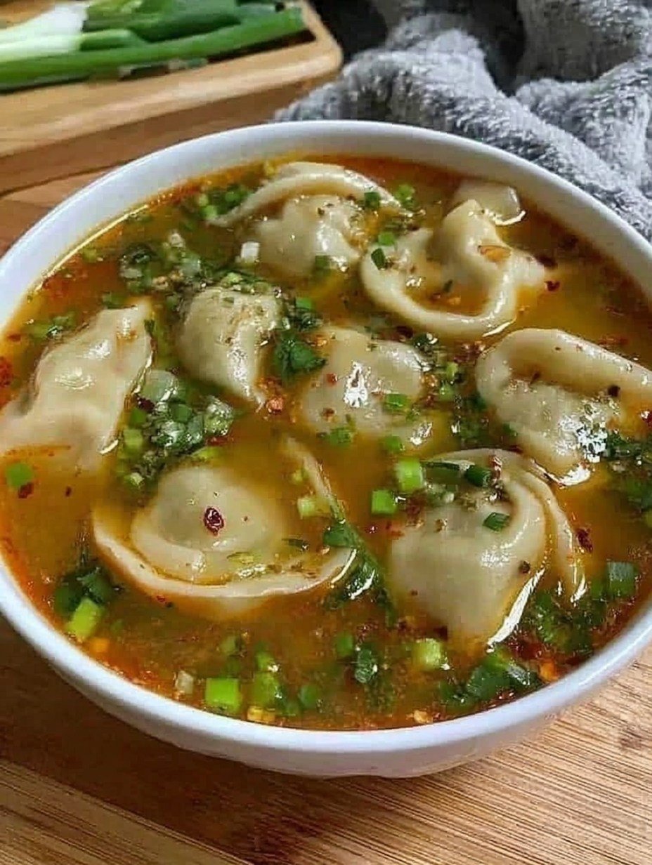 Drop the dumplings into the simmering broth. Cook for about 10–12 minutes until they float and the filling is cooked through.