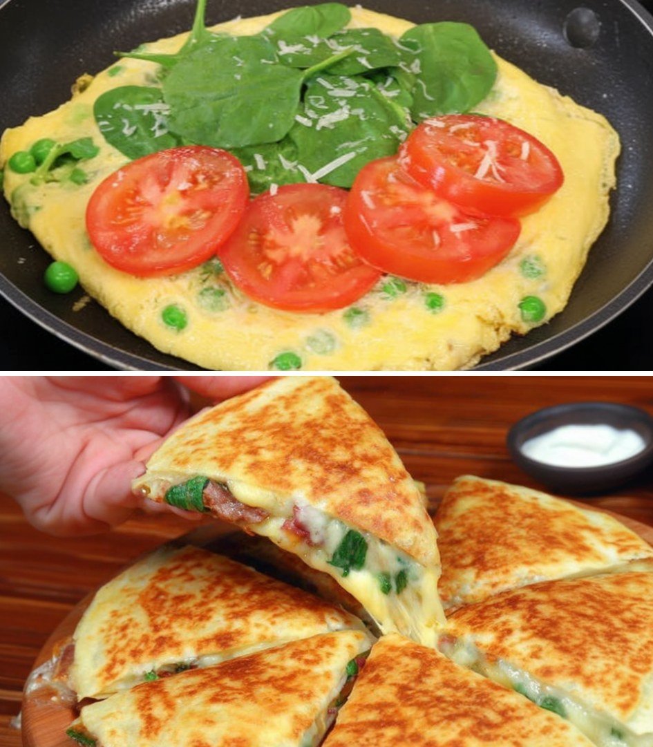 A golden, cheesy fusion of Mediterranean flavors wrapped in a crispy tortilla — filled with eggs, spinach, tomatoes, and melting cheese. Perfect for a hearty breakfast or a light lunch.