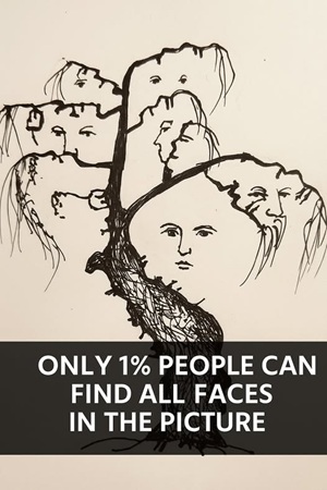 Lines that seemed random transform into expressions. Slowly, almost magically, human faces begin to emerge from the swirling branches.