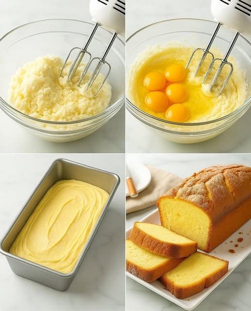Don’t overmix after adding the flour—this keeps your pound cake tender.