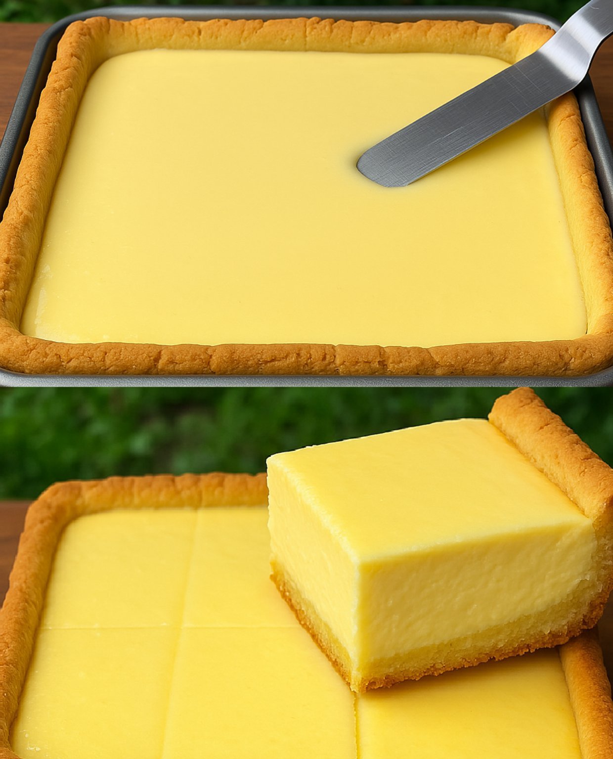 - Roll out remaining dough and cover the cream. Press edges to seal.