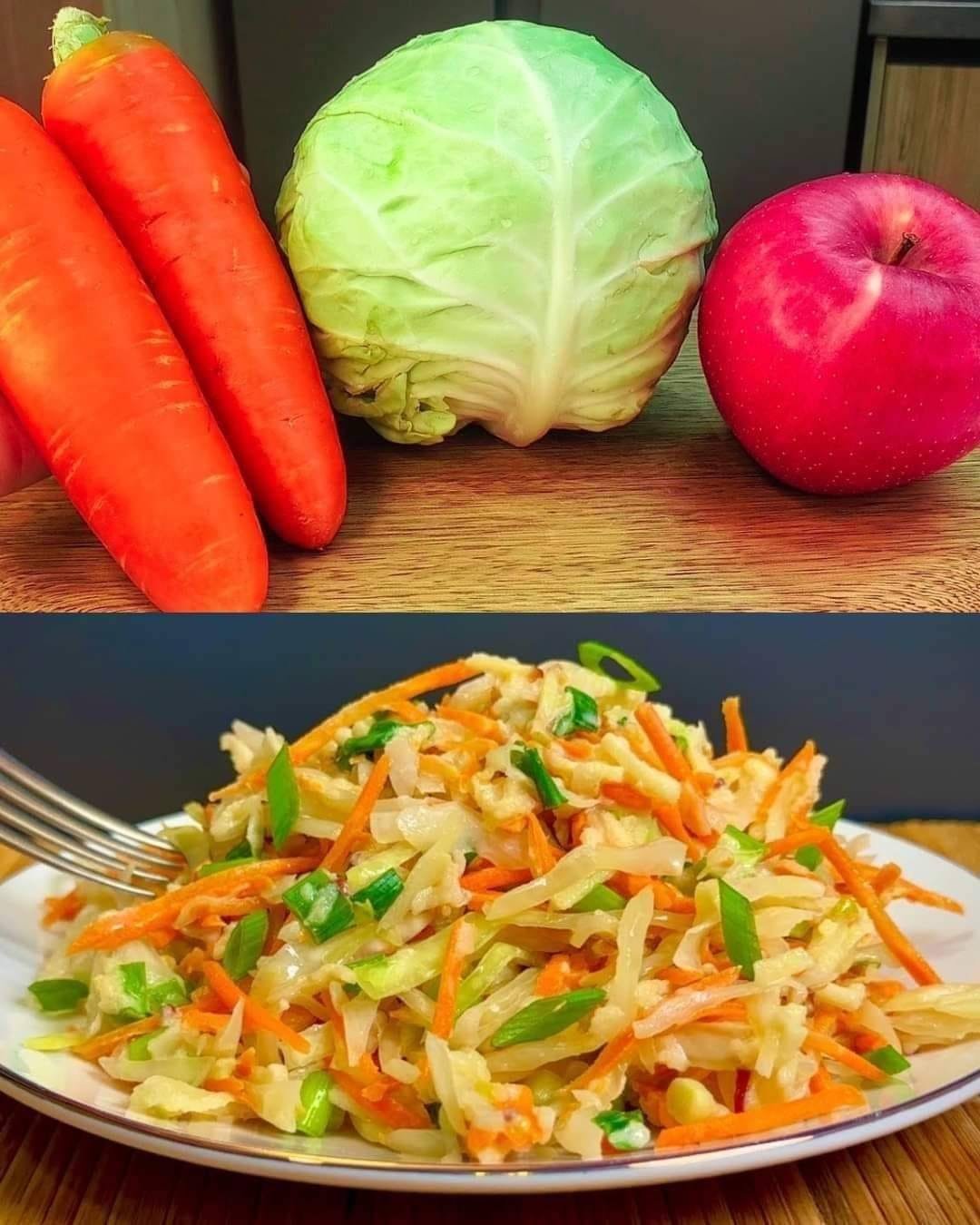 1. Mix the cabbage, apple, carrot, and spring onions in a large bowl.