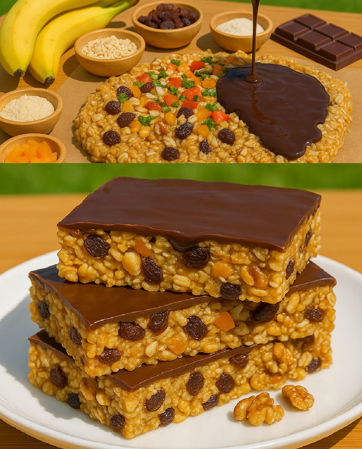 Bake in a preheated oven at 360°F (180°C) for 10-12 minutes just to set and slightly toast the oats and nuts. - Add the Chocolate Topping