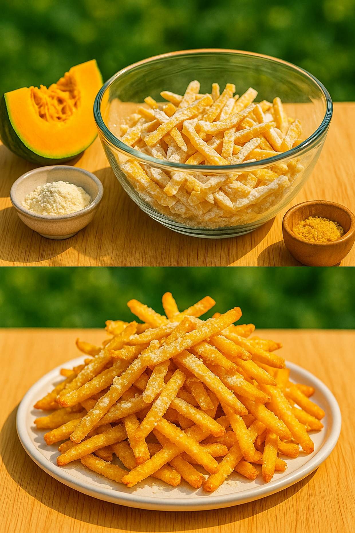 - Toss the squash strips until evenly coated. Shake off any excess powder.