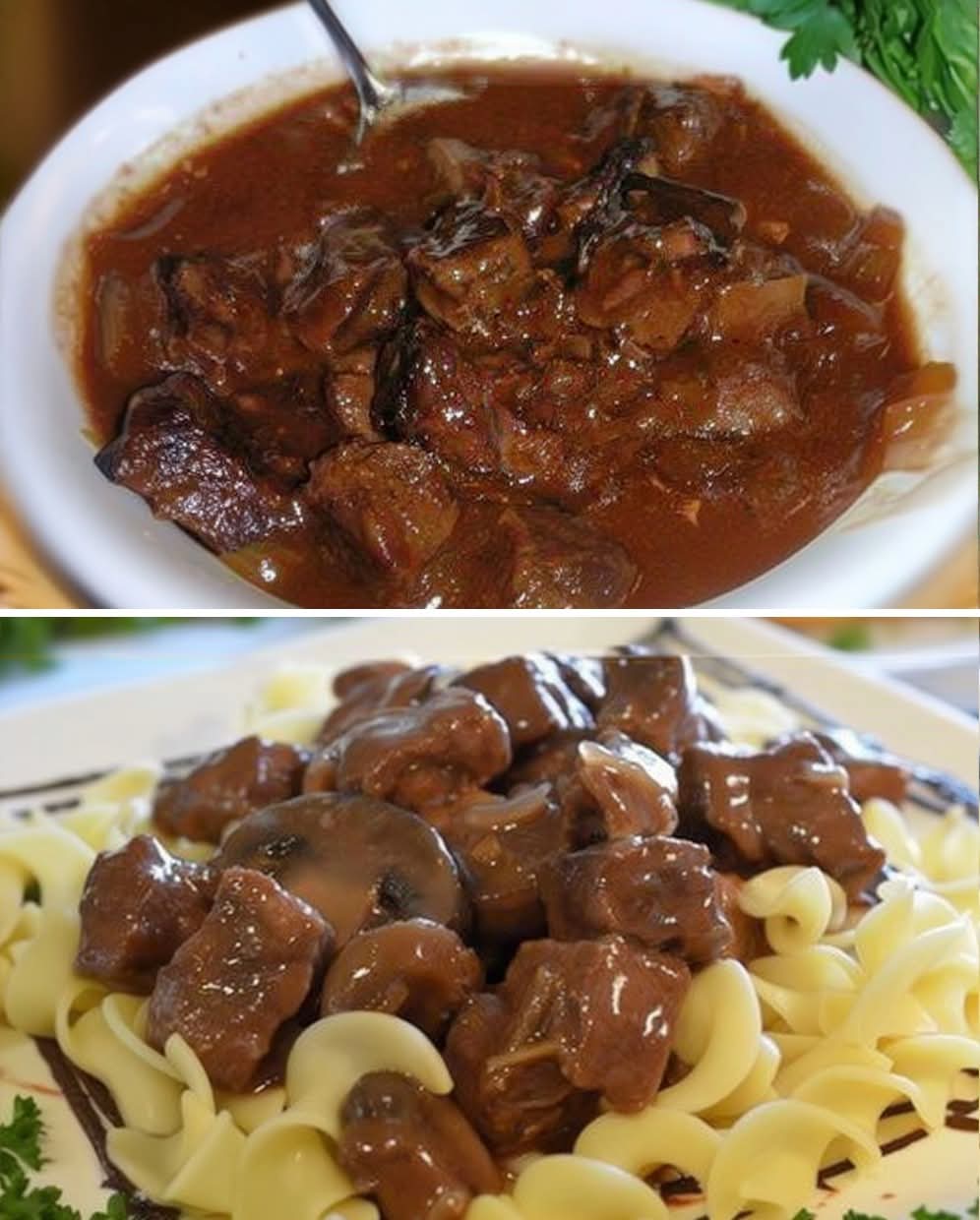 When the meat is tender, add in the cooked noodles